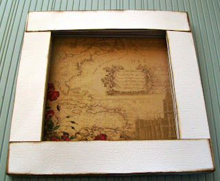Ø Choose a piece of paper from your Megs Garden, Travel Mini Pack for your main background paper of the inside of your card. Adhere with a strong glue or Wonder Tape to the back of your book frame. *See Photo 7