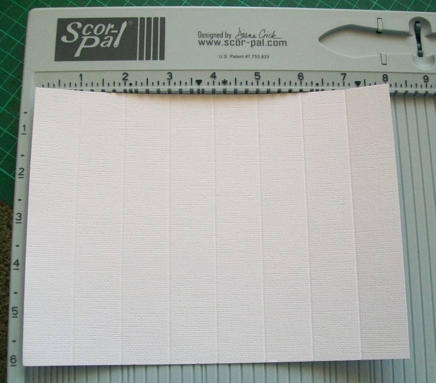 Ø Score each piece of cut cardstock at 1” going across the whole 8”. *See photo 1