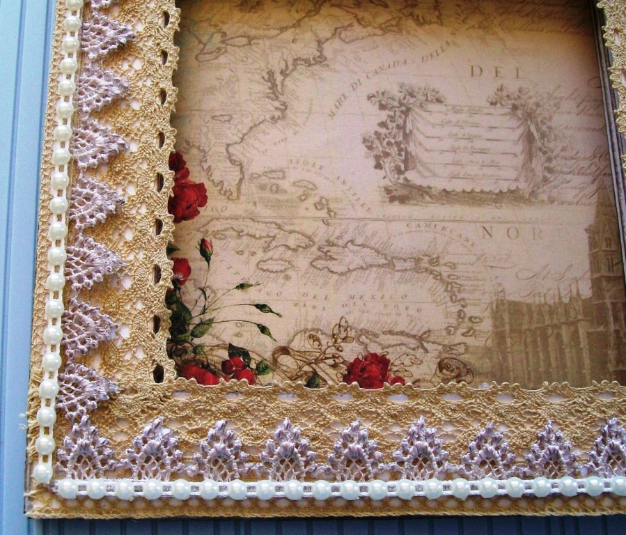 Ø Using Wonder Tap, adhere lace to outer edge of your book frame. Decorate as you would please, using a variety of embellishments that are to your liking.